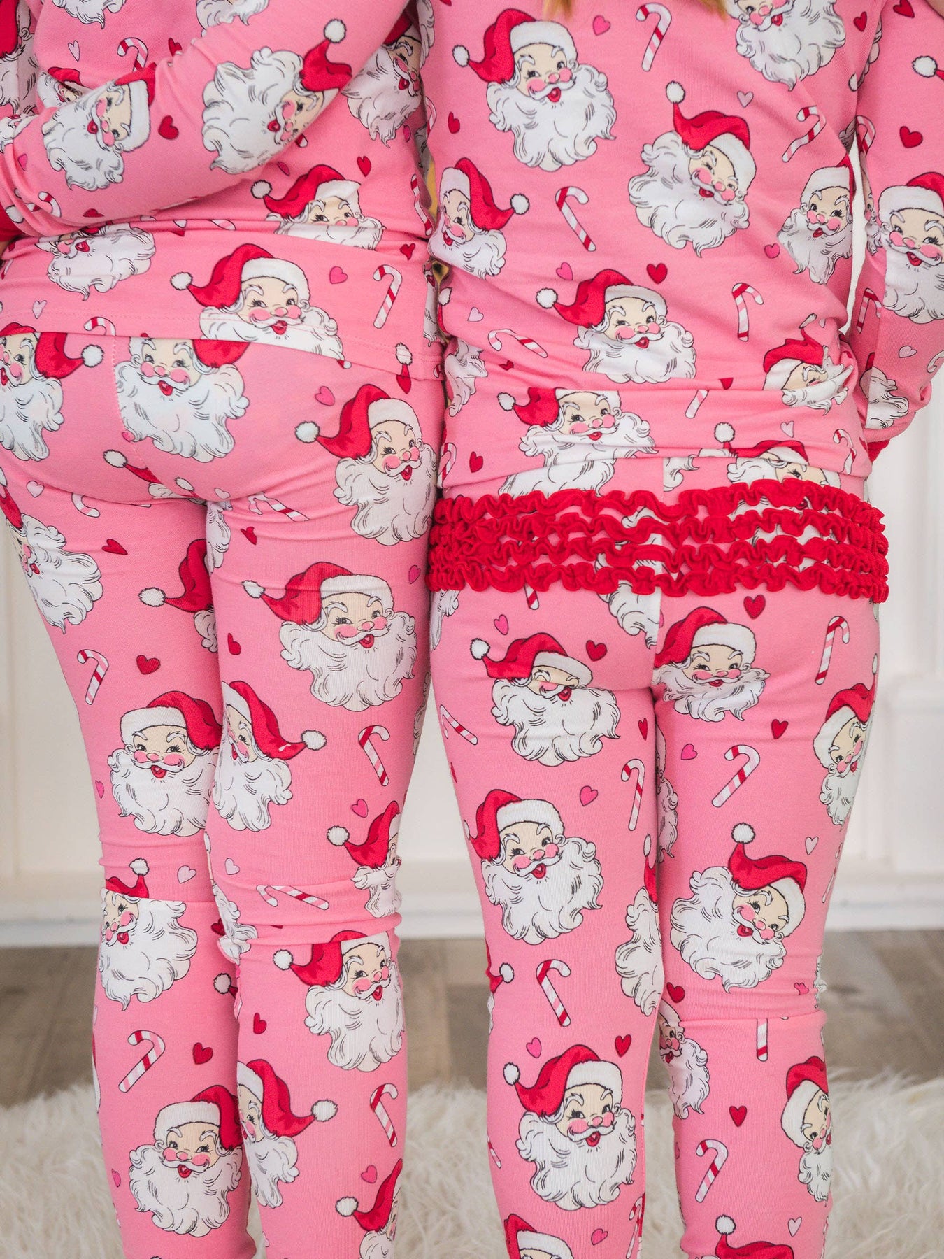 Sweet candy canes and retro-inspired Santas make this print perfect for Christmas and staying cozy during the winter holiday season! Pairs well with Red, White, Bubblegum Pink, Santa Joy.